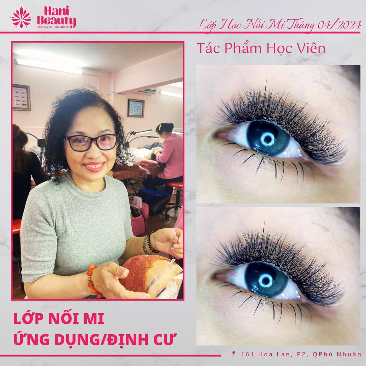 Fanpage: facebook.com/haniacademy. Website: haniacademy.vn. Nếu bạn đã sẵn sàng bước vào thế giới làm đẹp với khởi điểm thuận lợi, đừng chần chừ liên hệ Hani Academy để được tư vấn lộ trình chi tiết, đăng ký lịch học gần nhất và nhận ngay bộ dụng cụ trị giá 3 triệu đồng! Một khóa học chất lượng – chi phí tối ưu là bước đệm vững chắc giúp bạn trở thành nghệ nhân nối mi chuyên nghiệp, khẳng định phong cách riêng và tạo nguồn thu nhập đáng mơ ước.