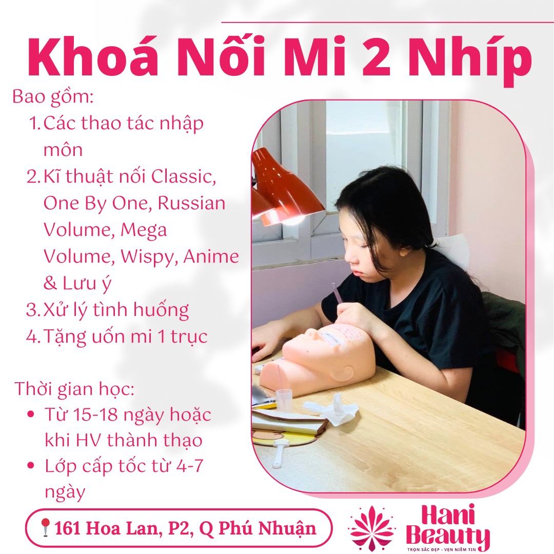 Học nối mi nâng cao chuyên sâu là con đường ngắn nhất giúp bạn chuyển đổi nghề nghiệp, tăng thu nhập và làm chủ cuộc sống. Với khoản đầu tư chỉ bằng một chiếc điện thoại tầm trung, bạn đã sở hữu kỹ năng sinh lời bền vững, phục vụ nhu cầu đẹp của hàng nghìn khách hàng trong nhiều năm tới. Hãy nhớ rằng Học nối mi nâng cao chuyên sâu: Đầu tư nhỏ, lợi ích lớn cho sự nghiệp làm đẹp không chỉ là một câu khẩu hiệu, mà là sự thật đã được chứng minh qua hàng nghìn học viên của Hani Academy. Đừng bỏ lỡ cơ hội bứt phá con đường làm đẹp của riêng mình – đăng ký ngay hôm nay để bước vào tương lai nghề nghiệp rực rỡ!